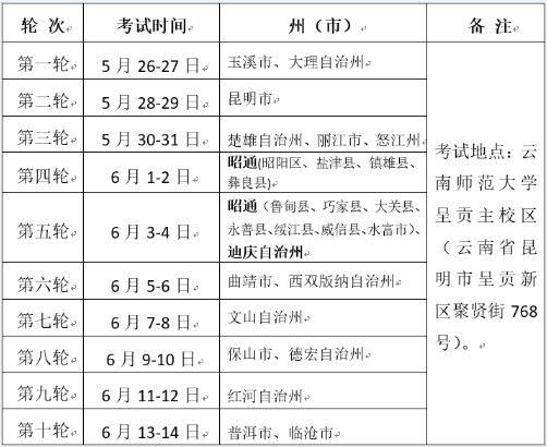 云南省2020年普通高等學(xué)校招生體育類專業(yè)統(tǒng)考時間及地點安排