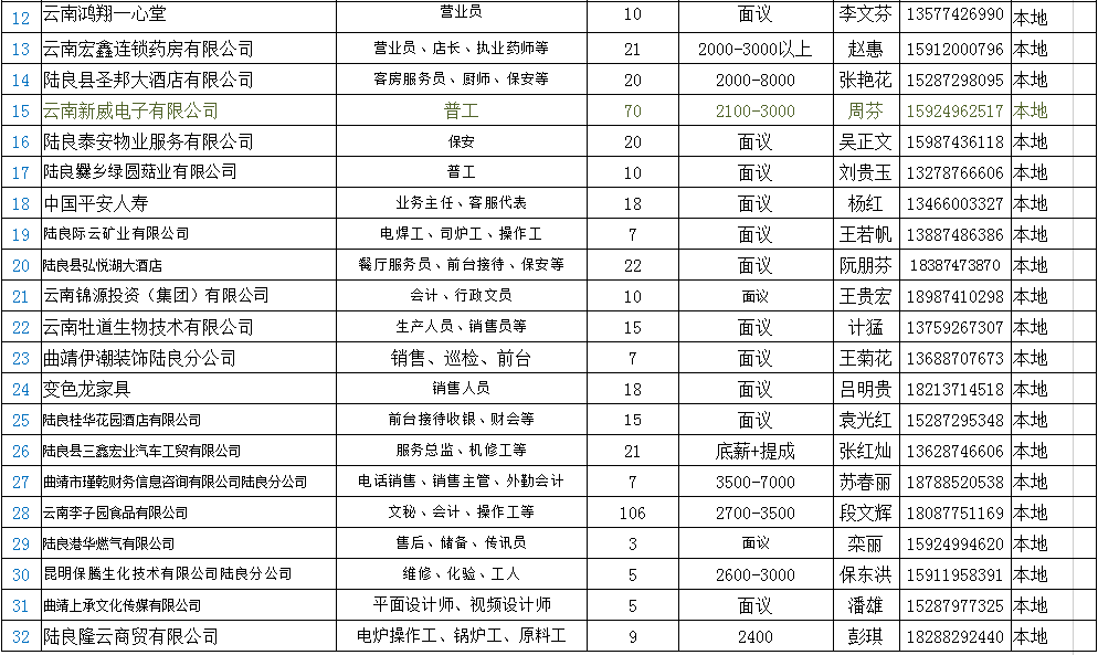 曲靖市陸良縣2020年企業(yè)用工信息發(fā)布