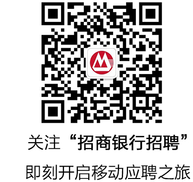 官方微信:掃描下方二維碼,關(guān)注“招商銀行招聘”微信公眾平臺(tái),獲取最新的校園招聘信息,點(diǎn)擊“我要應(yīng)聘-校園招聘-我要應(yīng)聘”,選擇我行并投遞簡(jiǎn)歷!