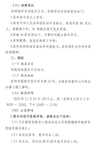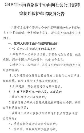 2019年云南省急救中心面向社會(huì)公開招聘編制外救護(hù)車駕駛員公告